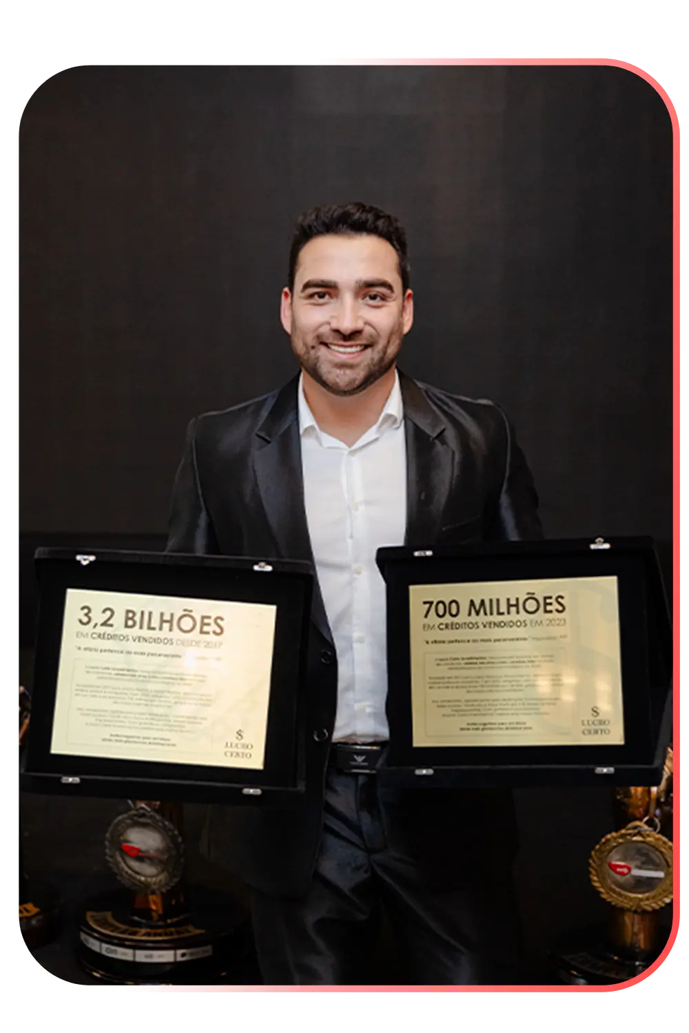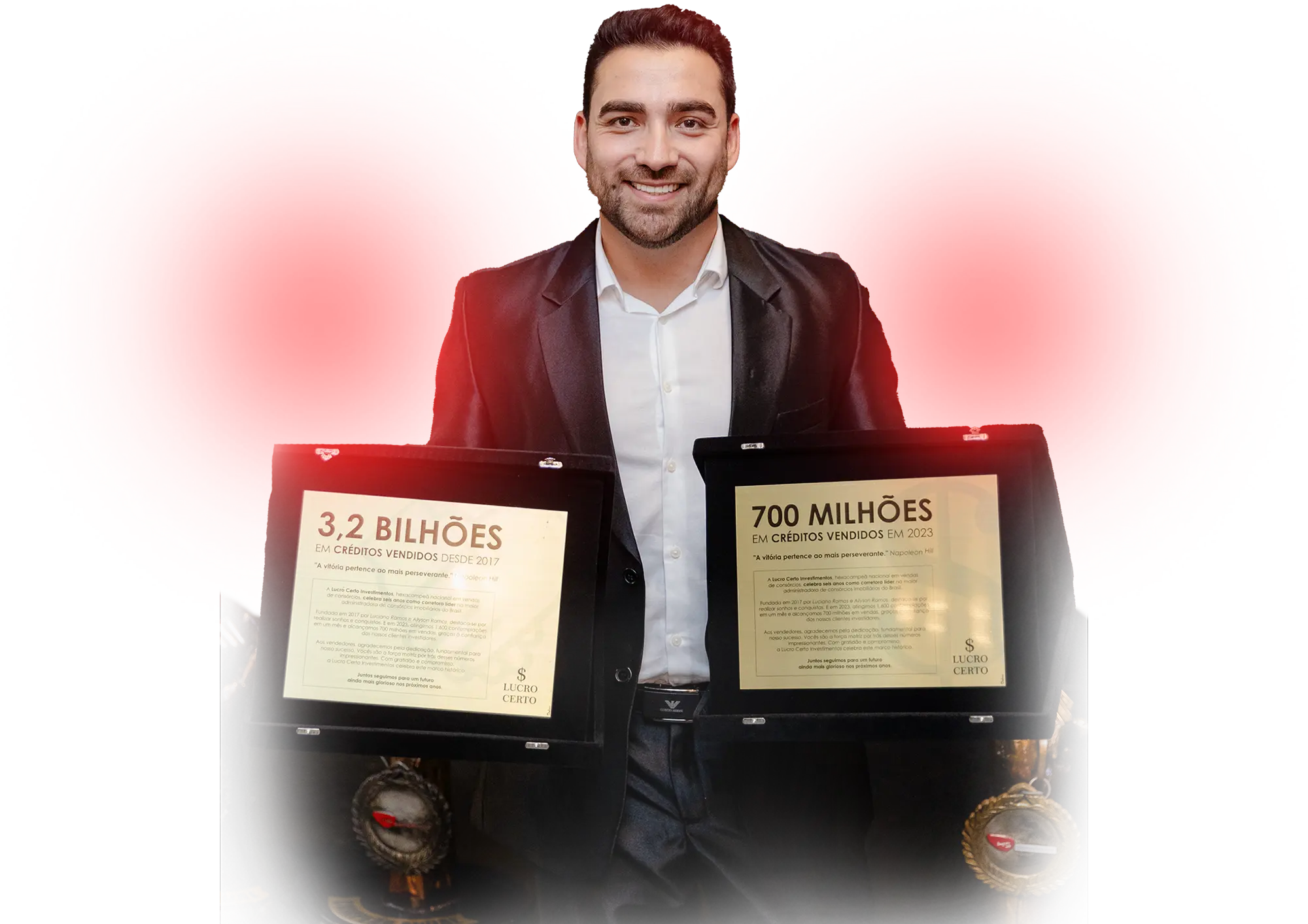 Eu sou sócio fundador da LUCRO CERTO Investimentos, a empresa que mais vende consórcios no Brasil. Já movimentamos mais de 3,5 BILHÕES em investimentos nos últimos 7 anos.